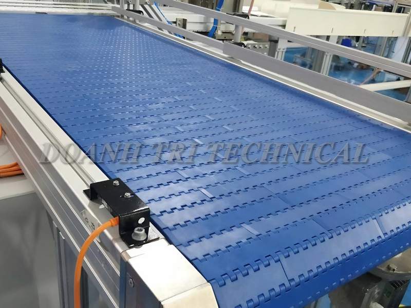 - Xích Slat Top: Dạng tấm liền (nhựa/thép), chạy thẳng hoặc cong.